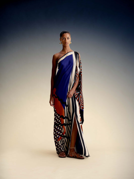 Kallas Asymmetric Kaftan in Silk.