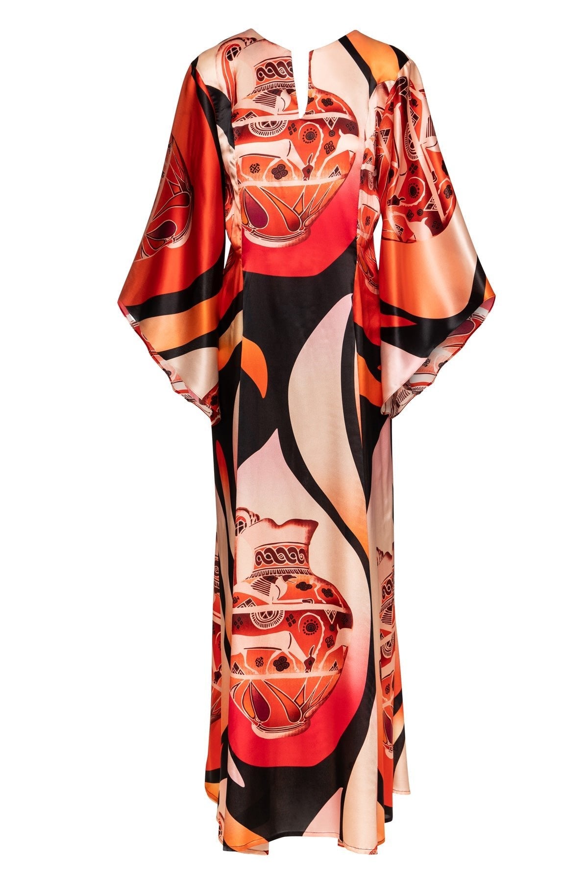 The ultimate satin feeling of our silk Athena dress is hard to miss. Crafted from silk sateen, featuring draped sleeves and a deep v-neck, is perfect for summer nights.