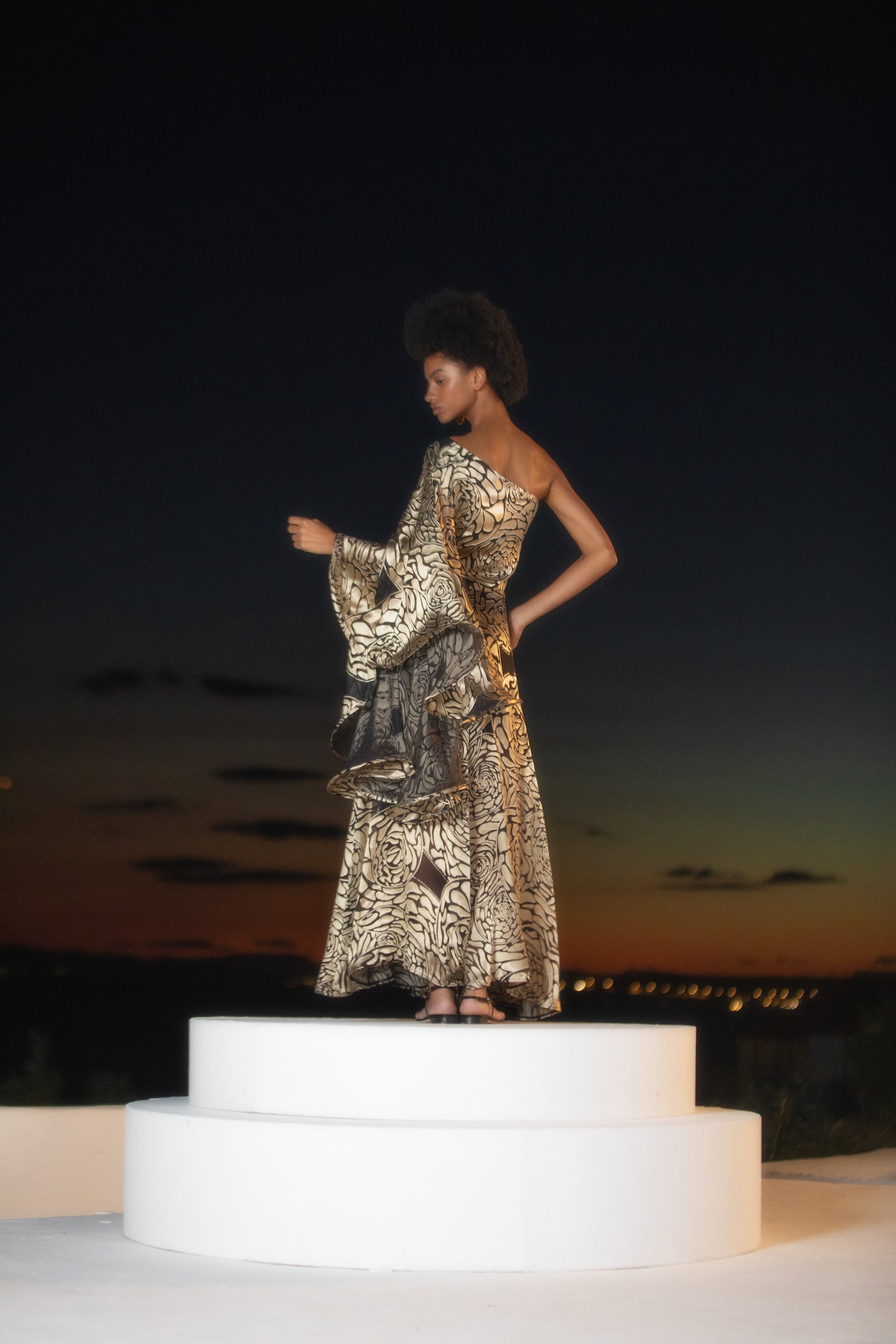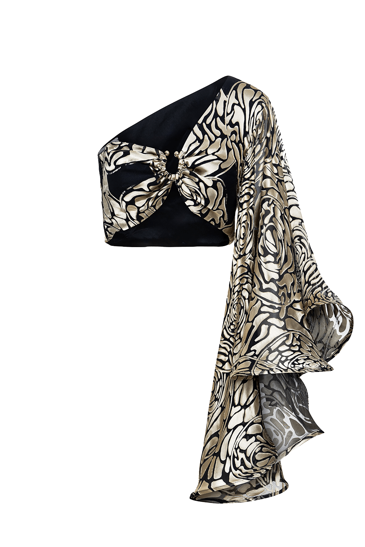 A magnificently crafted top in an exclusive textile made in our studio. The Helene top is made from a silk/viscose blend burn-out fabric( best known as Devore) and features a grand circular sleeve finished with soft crinoline. A true glamorous moment. Pair it with our Theodora Palazzo trousers or with our Ulla skirt for extra drama!Â