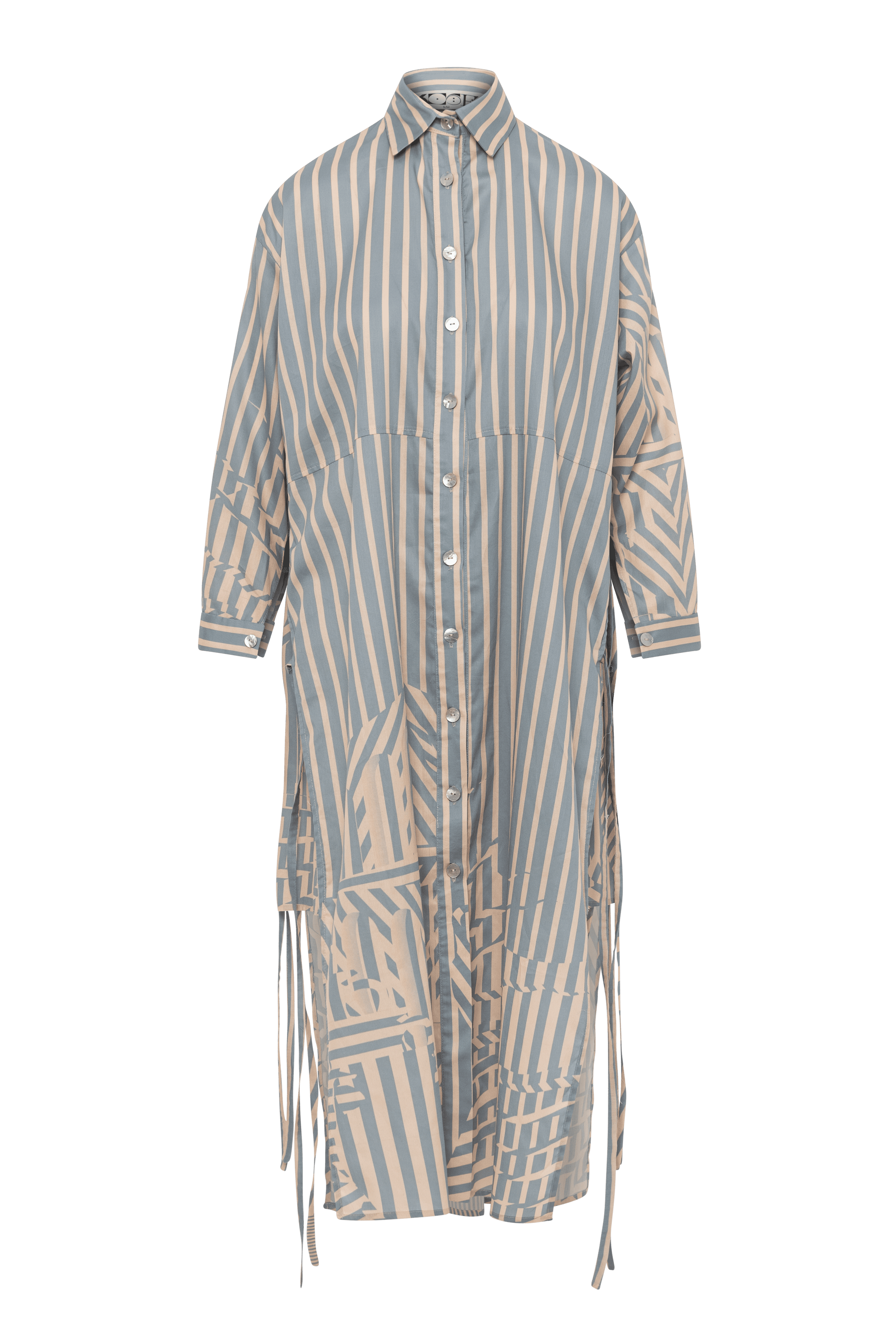 Our new addition to our signature Resort dresses, the Ilia camisole dress features side gaudettes that can be adjusted with cords on the side. The dress can be worn in three different ways. Made out of our exquisite cotton satin voile in our Stripes scenery print.