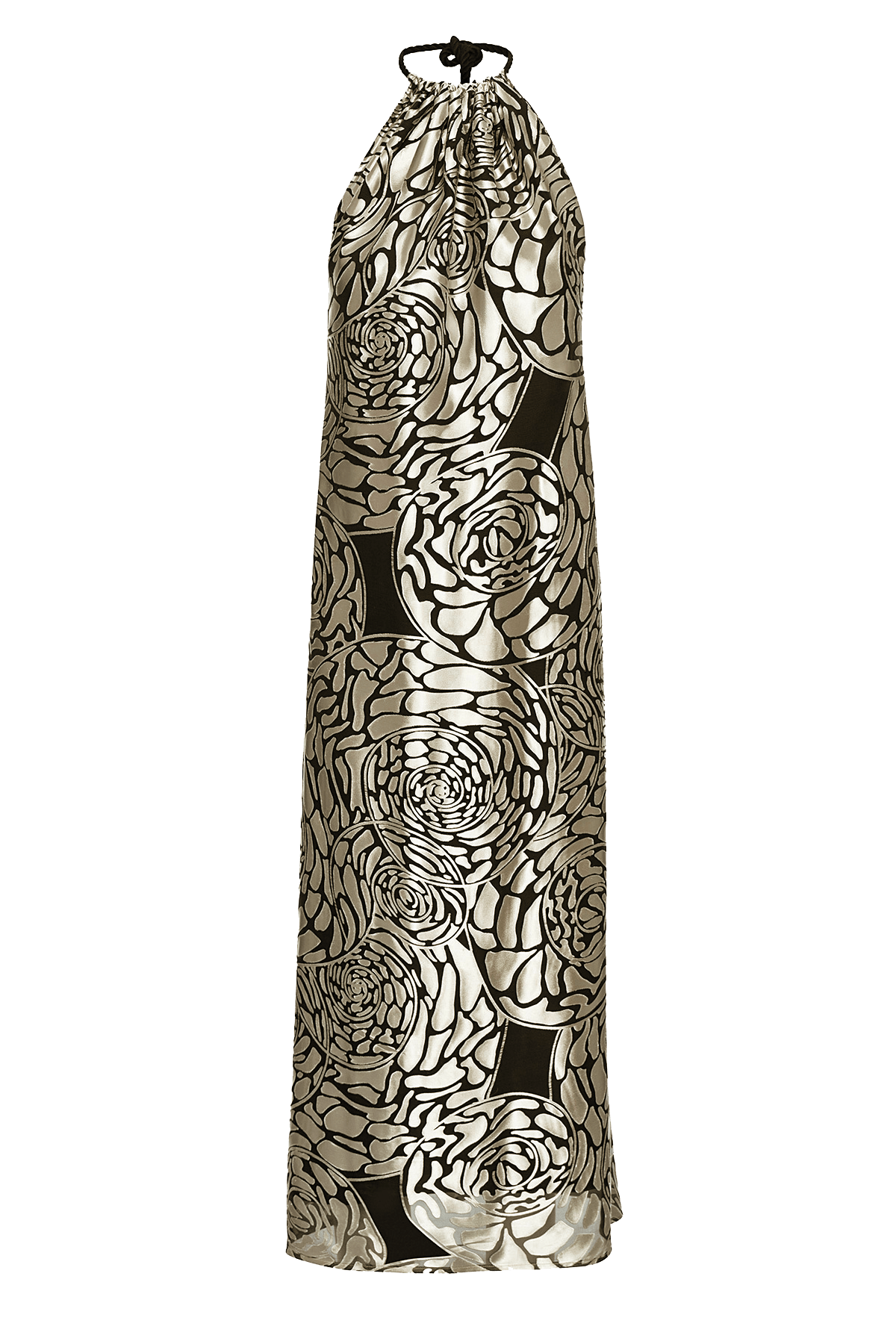 The Jeniffer dress comes back this summer in a custom made burn-out silk fabric. Alluring sensual and shimmering is made for a bold statement.