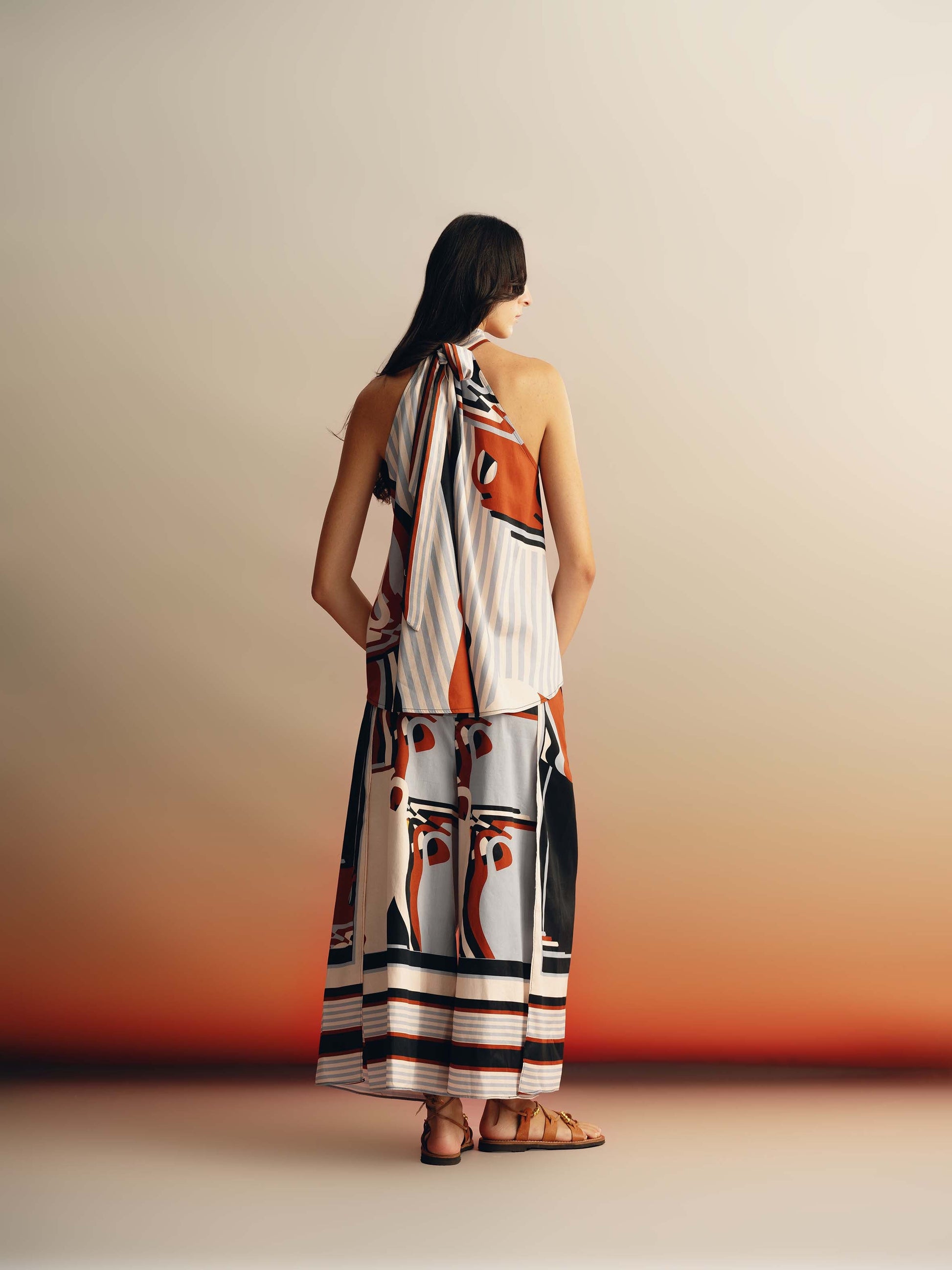 Our Julia Halter neck top features a bow tie neckline and can be worn on both sides. It has a natural volume drape and can be worn with our Gaitis styles bottoms. Crafted from our exquisite cotton satin voile. A perfect and easy Summer add to your wardrobe.