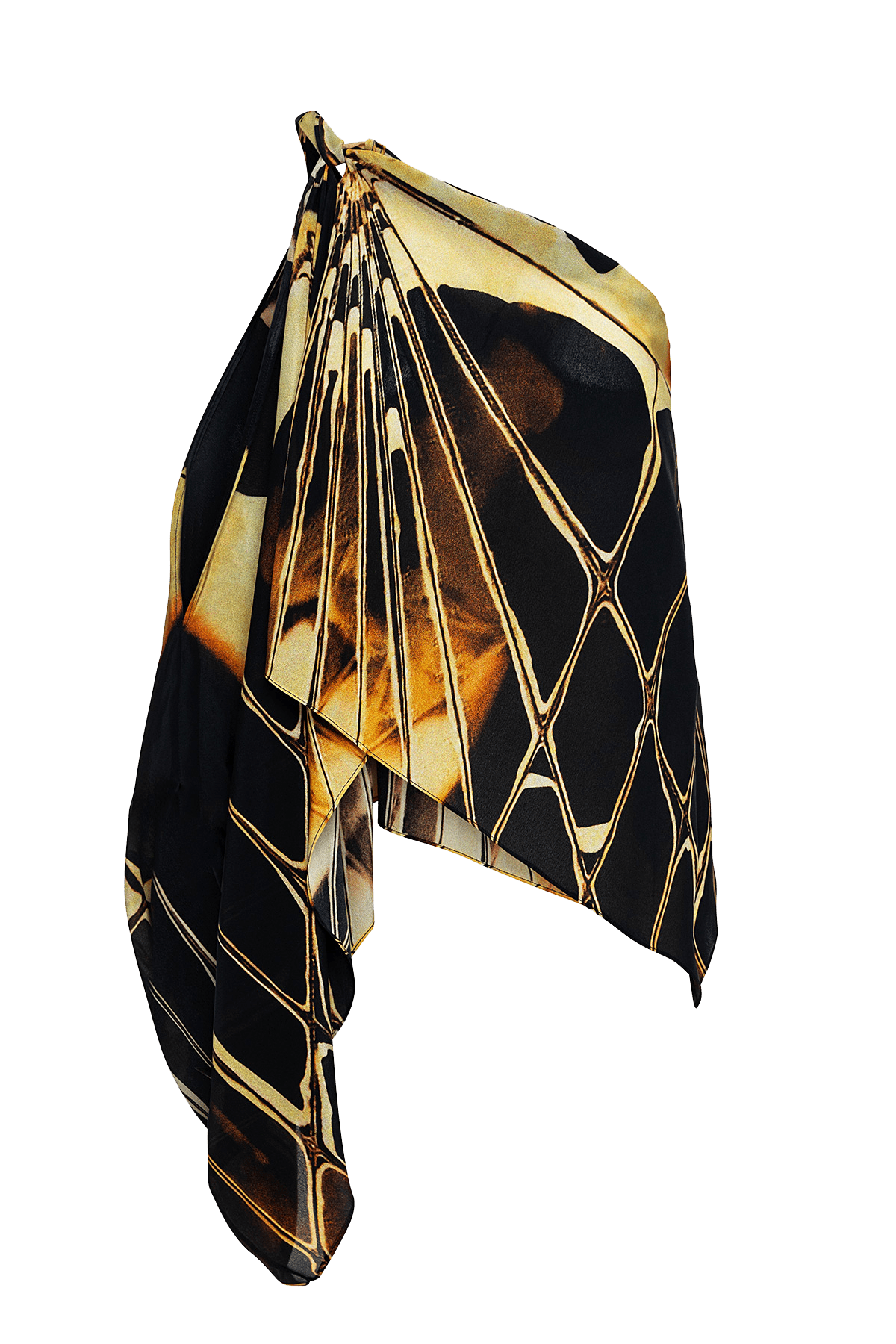 Our legendary Kallas gets a new twist as a top. Comes with a neck twist tie detail on our ethereal Phoenix Print.