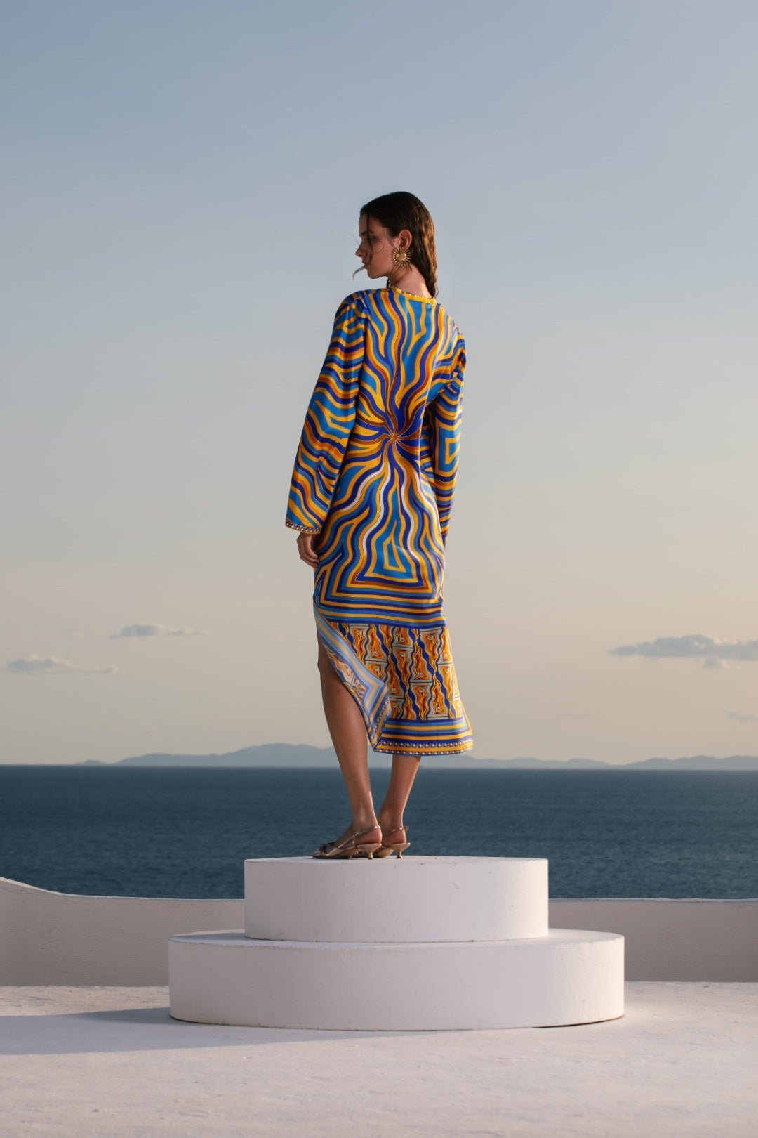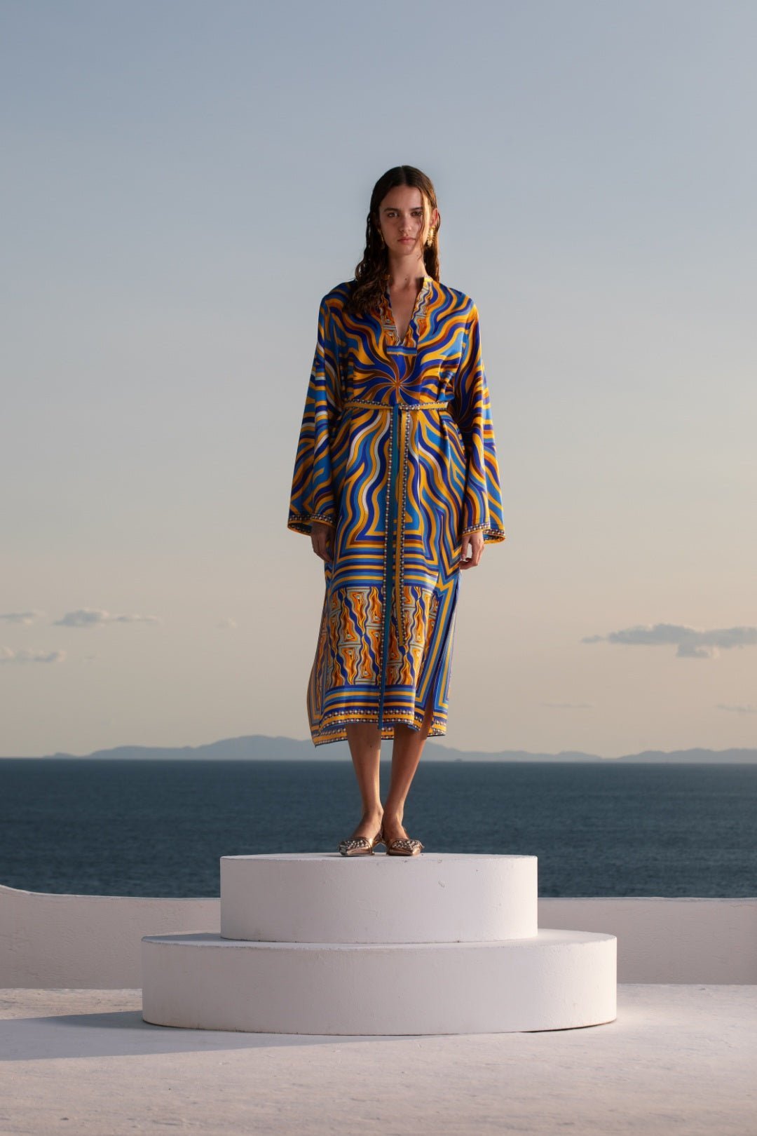 The best seller of our collections, returns back this season with another new twist. Featuring a v-neck and mandarin collar neck detail. Comes with belt.